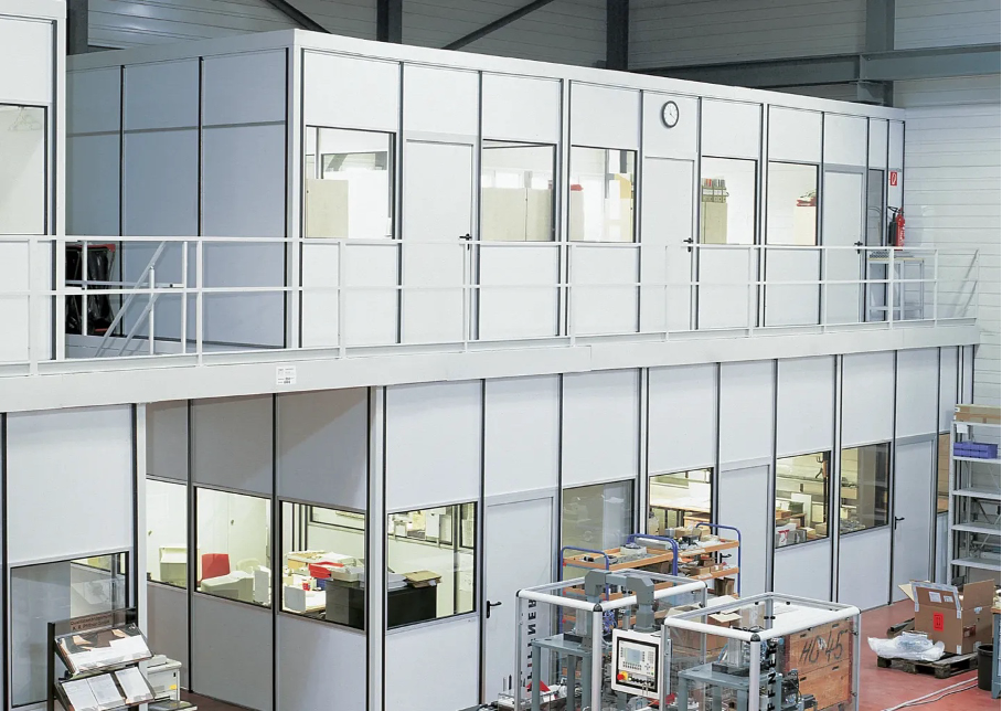 Wenn Produktionsflächen optimal genutzt werden müssen, bieten intelligente Raum-im-Raum-Systeme die perfekte Lösung. Ob 1-, 2- oder 3-geschossig (wenn Ihnen an der ein oder anderen Stelle der Platz ausgeht) auf einer Stahlbaubühne, als Trennwandanlage oder mit direkter Anbindung an bestehende Strukturen – wir entwickeln maßgeschneiderte Konzepte, die exakt auf Ihre betrieblichen Anforderungen abgestimmt sind.