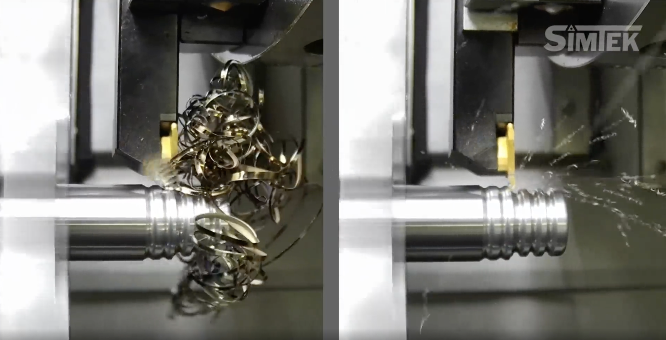 Bei 3D-gelaserten Spezialwerkzeugen von SIMTEK bringt ein Laser die Spanform-geometrie in die Werkzeugschneide ein. Dadurch entsteht ein optimaler Spanwinkel, der die Späne effektiv formt, lenkt oder bricht – je nach dem, was das individuelle Bearbeitungsszenario des Kunden gerade erfordert.